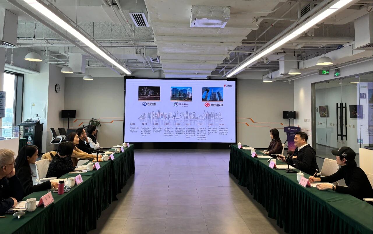 双创街控股董事长苗英伟以CBD数字创新中心的发展情况为切入点,介绍了双创街控股的业务板块和发展布局,带领考察团队参观了香港理工大学北京中心和入驻企业一即传媒。在科技展厅,苗英伟围绕科技成果转化、创新街区运营和创业投资等业务,分享了双创街控股在科技成果转化和创新街区运营方面取得的经验成果,同时对嘉定双创街的未来规划方案进行了深入细致的介绍。