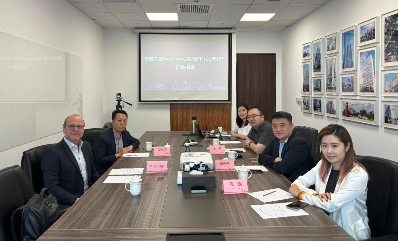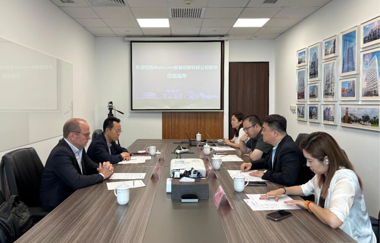 6月27日,巴西Brain4care发展创新科技公司CEO Plínio Targa一行莅临双创街控股考察交流,北京双创街控股有限公司董事长苗英伟,北京天坛医院科技处处长王昊,北京脑安医疗科技有限公司总裁张楠、副总裁王萌接待并陪同参观。