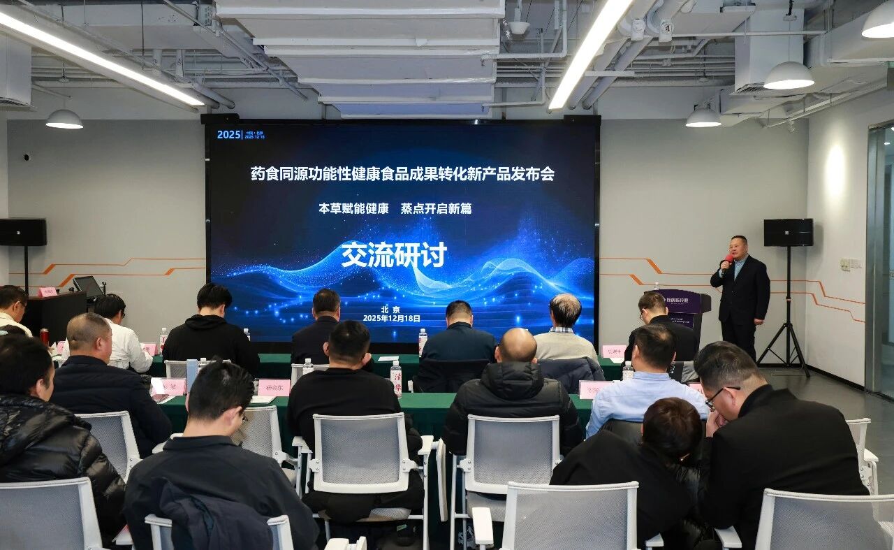 12月18日,由北京本草食治健康科技有限公司主办的药食同源功能性健康食品成果转化新产品发布会在在双创街控股CBD数字经济创新中心举办。本次发布会以 “本草赋能健康,蒸点开启新篇” 为主题,汇聚了国家食品安全创新中心、河北福成五丰食品股份有限公司、北京双创街科技发展有限公司等支持单位代表,以及科技企业、投融资机构嘉宾与新闻媒体记者,共同见证药食同源科研成果产业化的重要时刻。