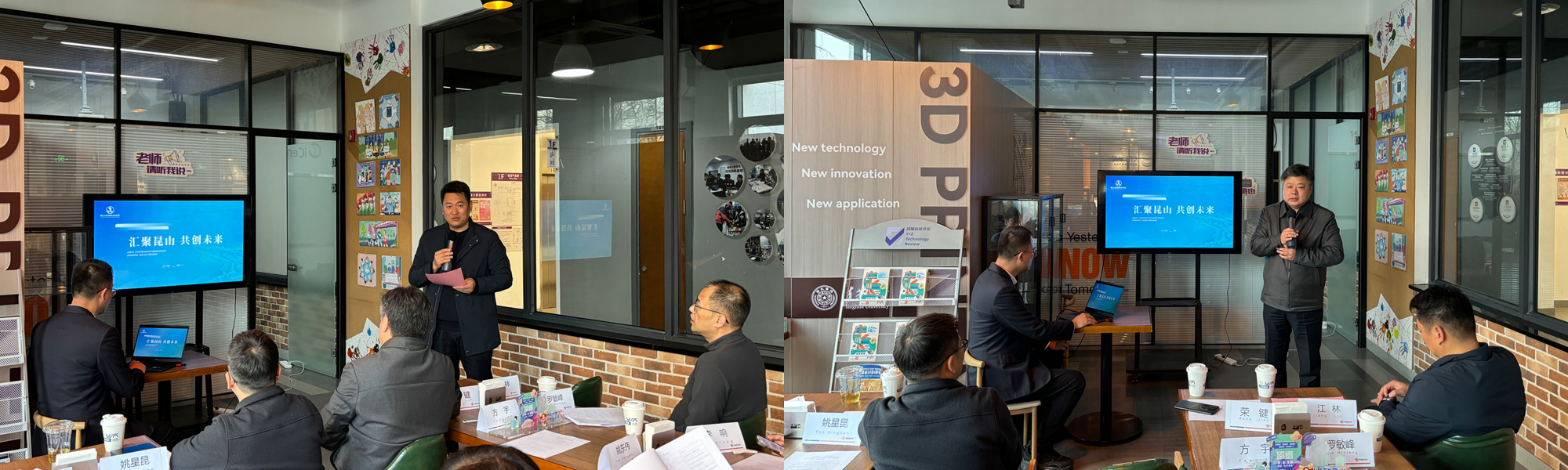 活动伊始,清华大学基础工业训练中心主任助理荣键介绍了中心在创新人才培养、科研成果转化等方面的优势资源,期待与昆山在产业创新领域开展深度合作;昆山滨湖新城集团总经理江林阐述了活动举办的初衷,描绘了昆山依托长三角区位优势、聚焦文创与重点产业发展的美好愿景,向在场嘉宾发出携手共创的诚挚邀约。