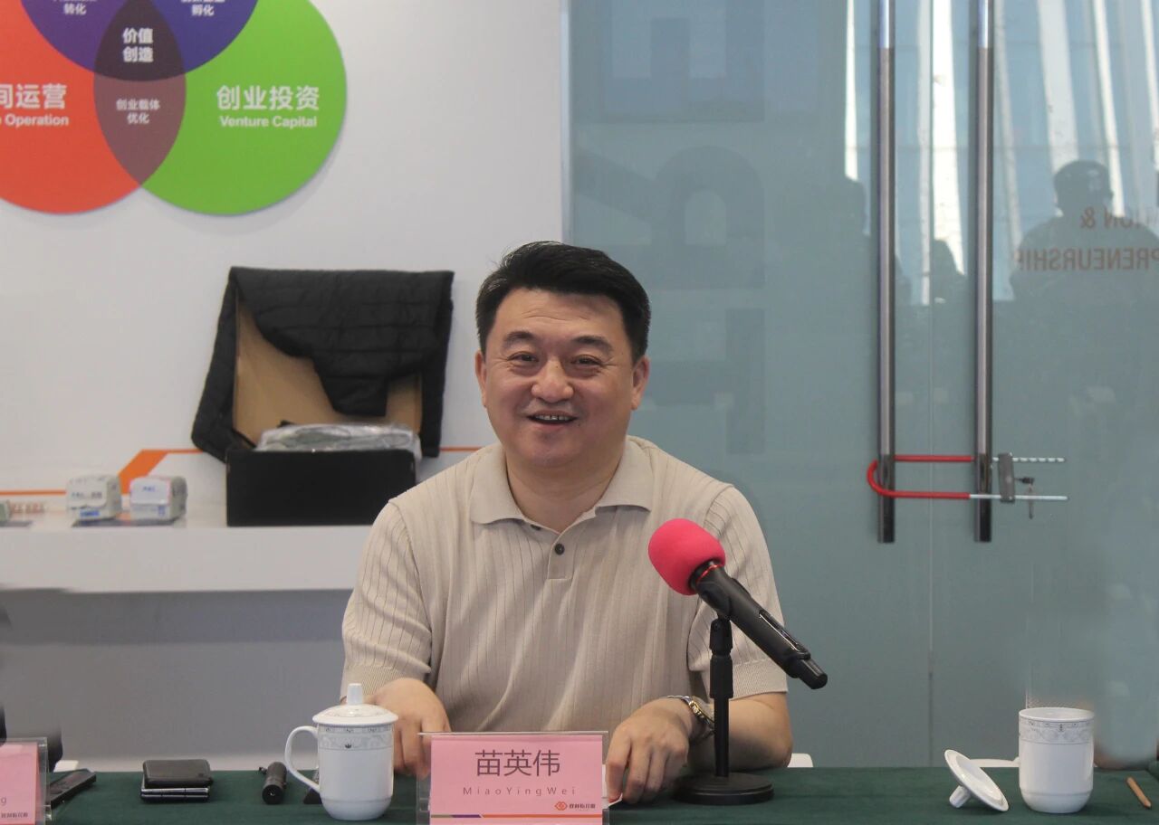 双创街控股董事长苗英伟介绍了双创街控股的业务板块和发展布局,带领考察团队参观了CBD数字经济创新中心科技展厅,并围绕科技成果转化、创新街区运营和创业投资等业务,介绍了双创街控股在科技成果转化和创新街区运营方面取得的经验成果。