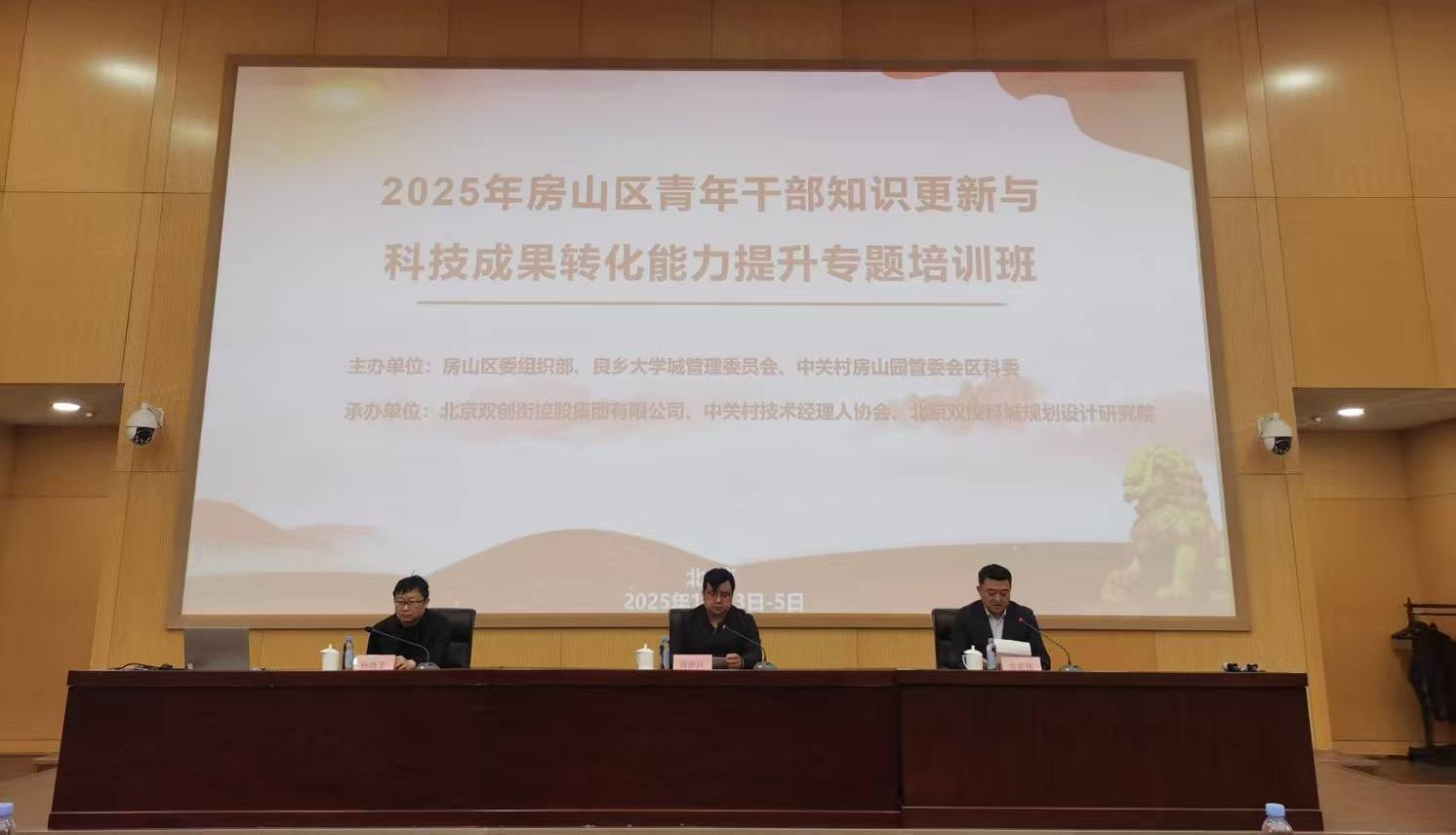 为进一步推动区域科技成果转化与产业化,培育高素质专业化技术转移人才队伍,助力区域科技创新高质量发展。12月3日,由房山区委组织部、良乡大学城管理委员会、中关村房山园管委会区科委联合主办,北京双创街控股有限公司、中关村技术经理人协会、北京双控科城规划设计研究院有限责任公司共同承办的 “房山区青年干部知识更新与科技成果转化能力提升专题培训班” 在中关村新兴产业前沿技术研究院正式开班。良乡大学城管委会副主任周琳玕、北京双创街控股有限公司董事长苗英伟、中关村技术经理人协会秘书长杨晓非出席开班仪式。